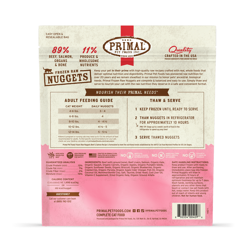 Primal Raw Frozen Beef & Salmon Formula Nuggets For Cats
